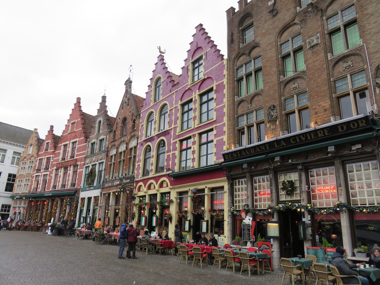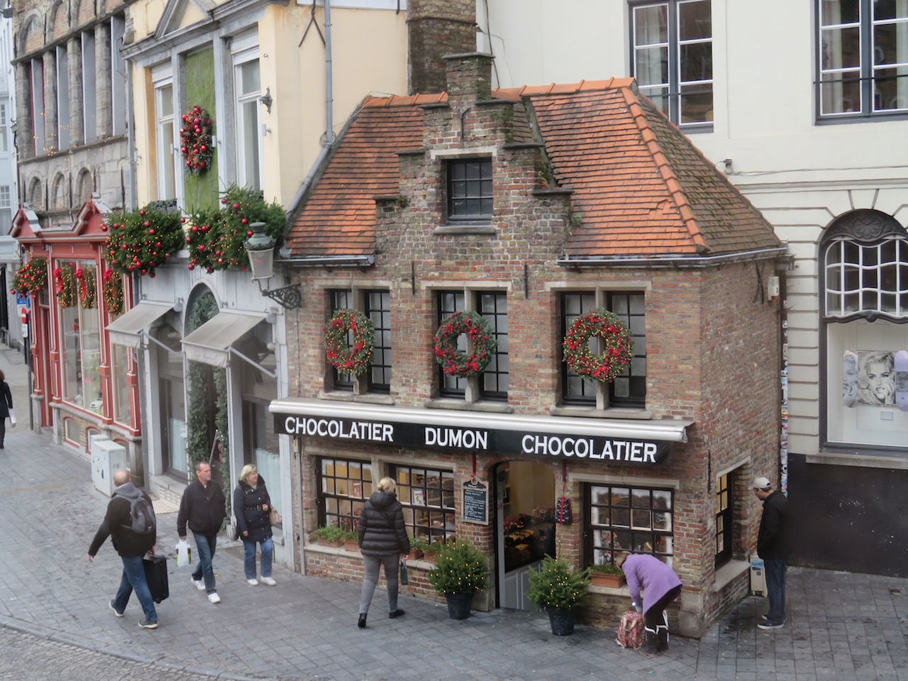 After three days in Amsterdam, we took a high-speed train to Brussels, where we stayed downtown near a huge Christmas market (the first of several on our trip). Brussels is not quite as charming as Amsterdam, but there are a lot of beautiful buildings and the market was fantastic. There were also two different light shows that totally made the trip worth it (we’ll post some videos of those later). We also took a day trip to Bruges, a smaller city about an hour away from Brussels. Bruges has a well-preserved town center that was really fun to explore, and we bought some of the best chocolate we’ve ever had.