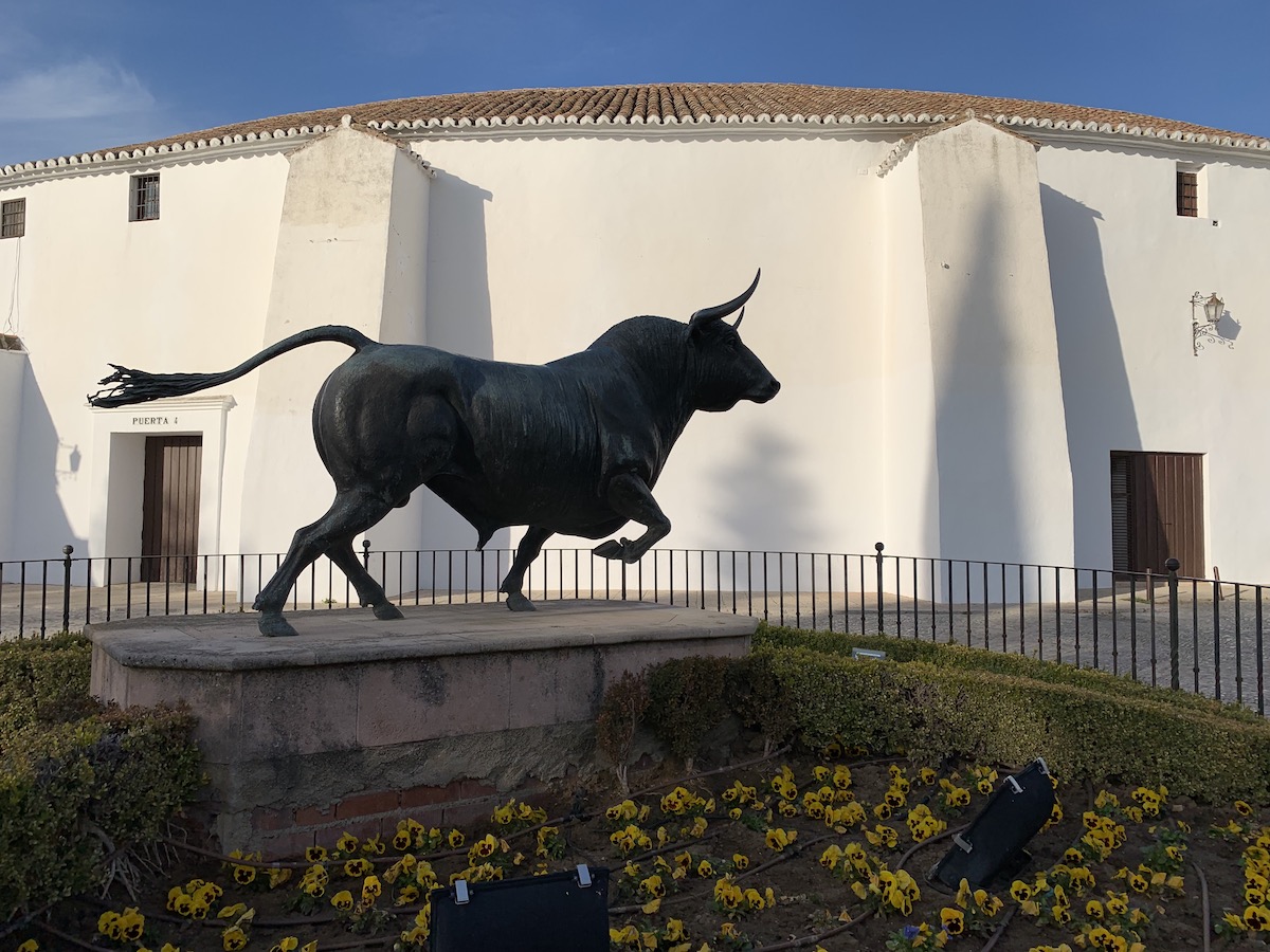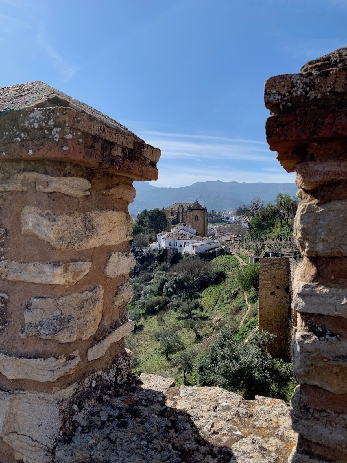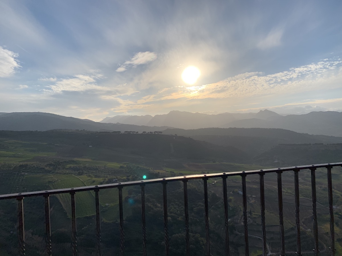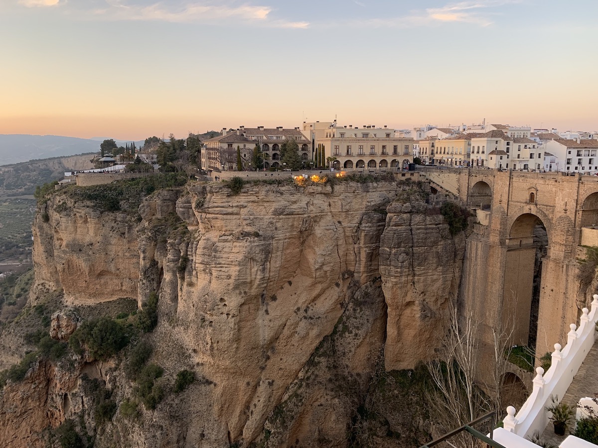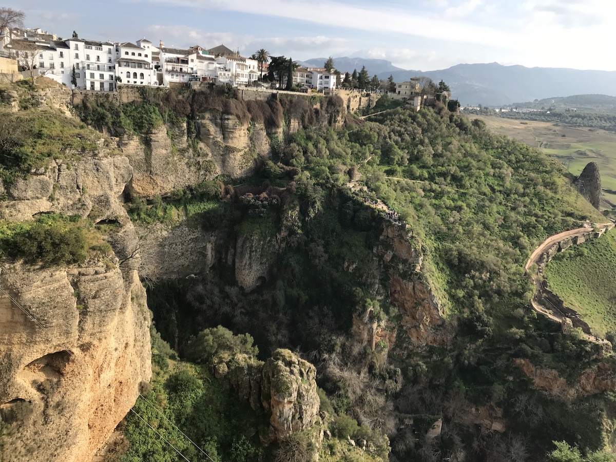 One of the places we were most looking forward to visiting in Spain was Ronda, so we were excited to enjoy a weekend getaway there. It is a relatively small town, located in the mountains northwest of Málaga on the Guadalevin River. The river creates the feature that defines Ronda: El Tajo Canyon, a steep gorge which is over 300 feet deep and divides the town in two. There are three beautiful bridges over the gorge, the Puente Romano (built by the Romans), the Puente Viejo (the “Old Bridge”, built by the Moors), and the mind-blowing Puente Nueve (The “New Bridge”, which despite the name is well over 200 years old). On one side of the canyon is the old, Moorish town, with the whitewashed buildings and narrow, winding streets. The other side contains the new town, with charming plazas and Spain’s oldest bull-fighting ring, along with the more modern outskirts.