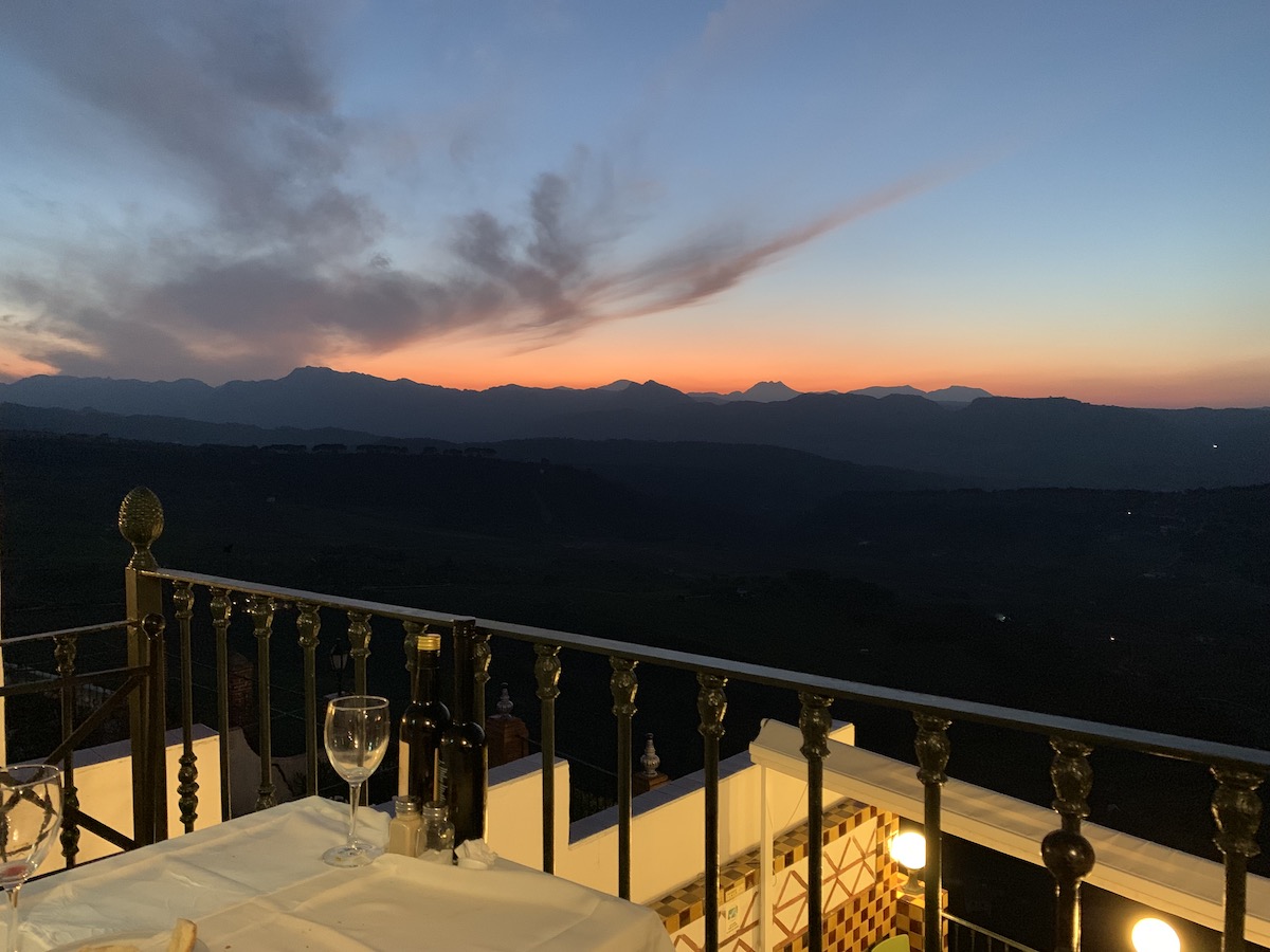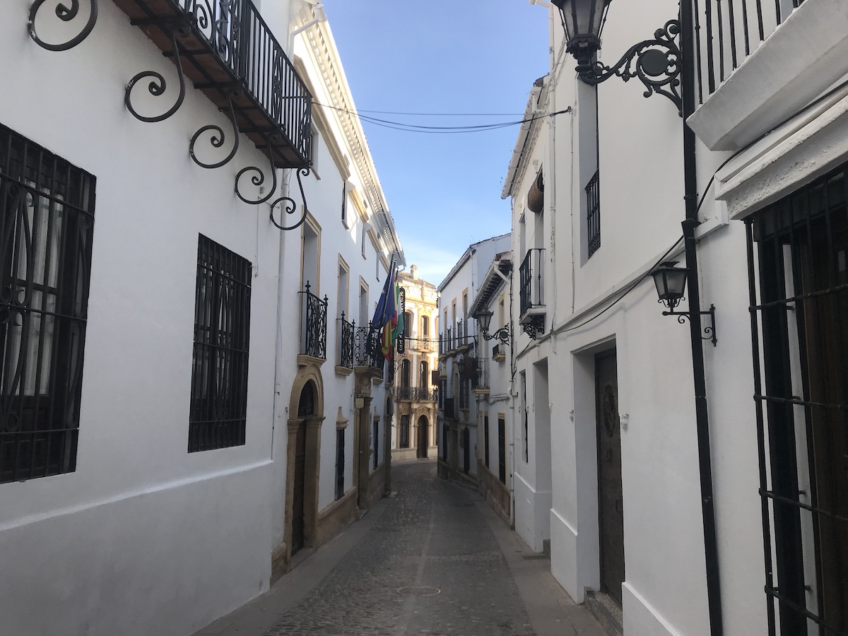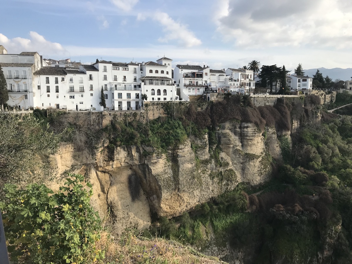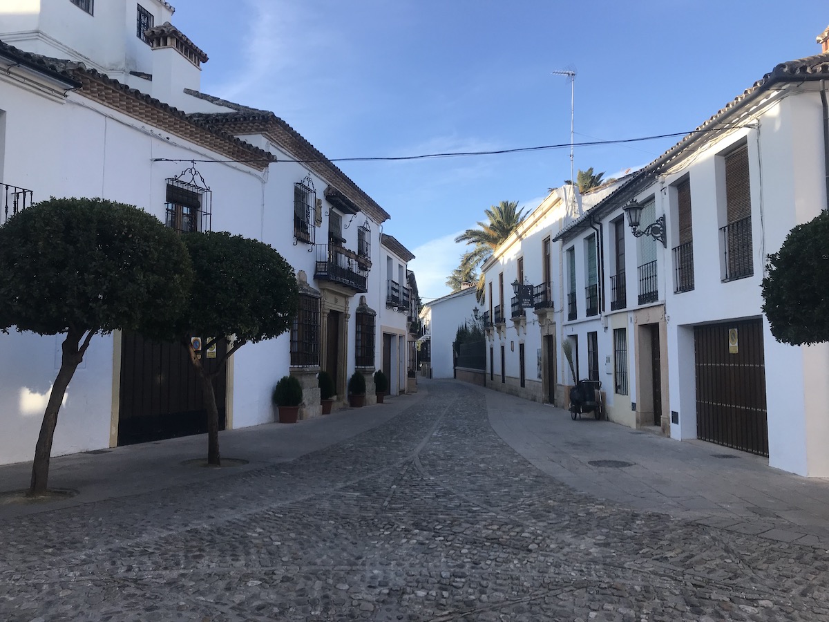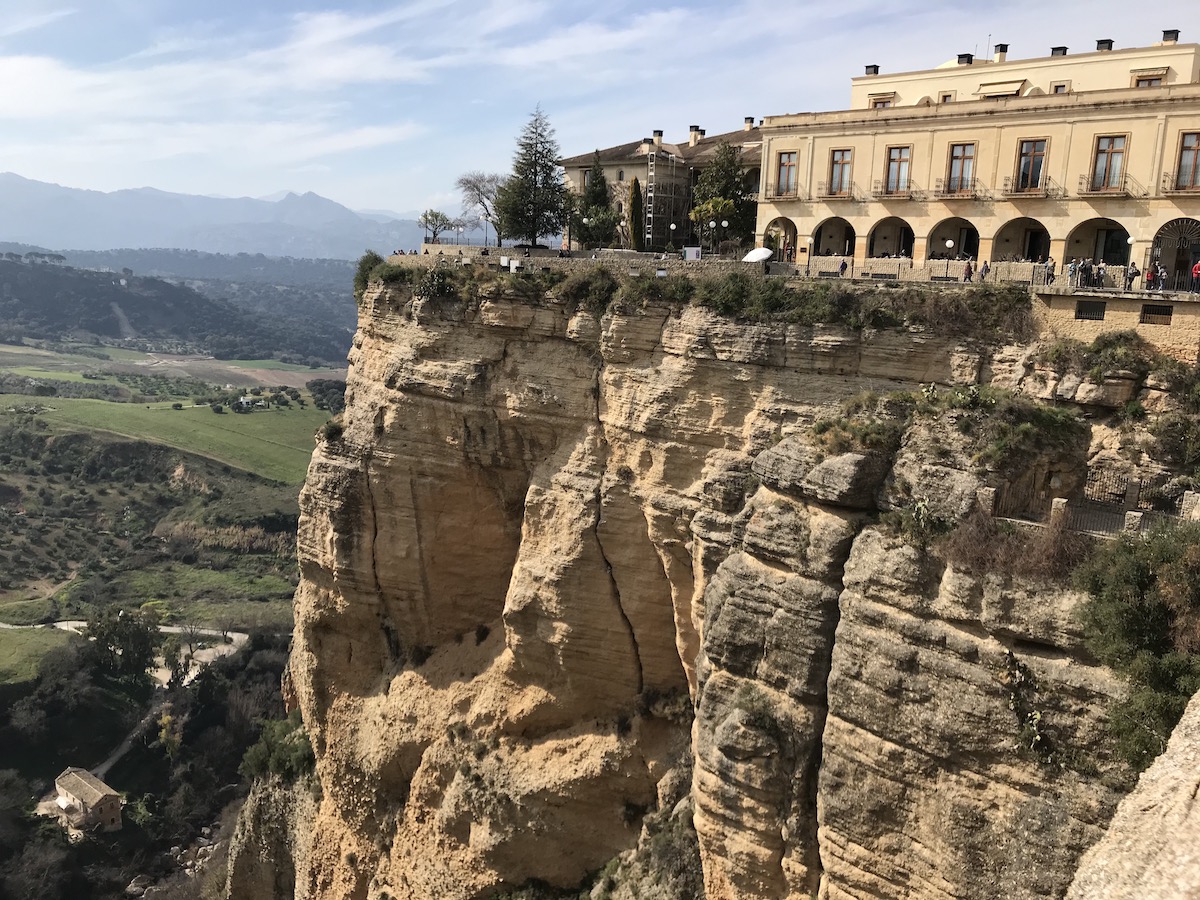One of the places we were most looking forward to visiting in Spain was Ronda, so we were excited to enjoy a weekend getaway there. It is a relatively small town, located in the mountains northwest of Málaga on the Guadalevin River. The river creates the feature that defines Ronda: El Tajo Canyon, a steep gorge which is over 300 feet deep and divides the town in two. There are three beautiful bridges over the gorge, the Puente Romano (built by the Romans), the Puente Viejo (the “Old Bridge”, built by the Moors), and the mind-blowing Puente Nueve (The “New Bridge”, which despite the name is well over 200 years old). On one side of the canyon is the old, Moorish town, with the whitewashed buildings and narrow, winding streets. The other side contains the new town, with charming plazas and Spain’s oldest bull-fighting ring, along with the more modern outskirts.