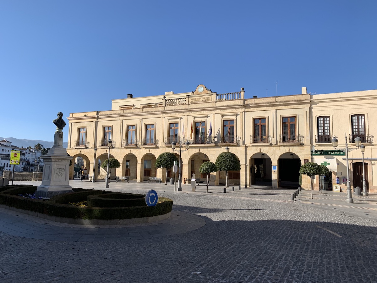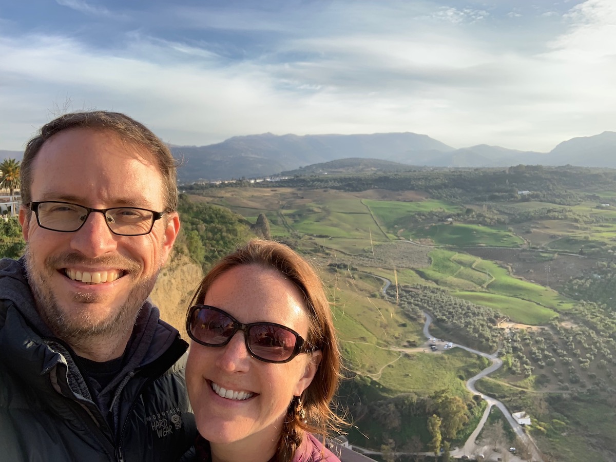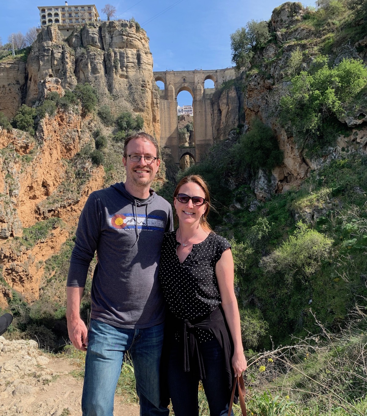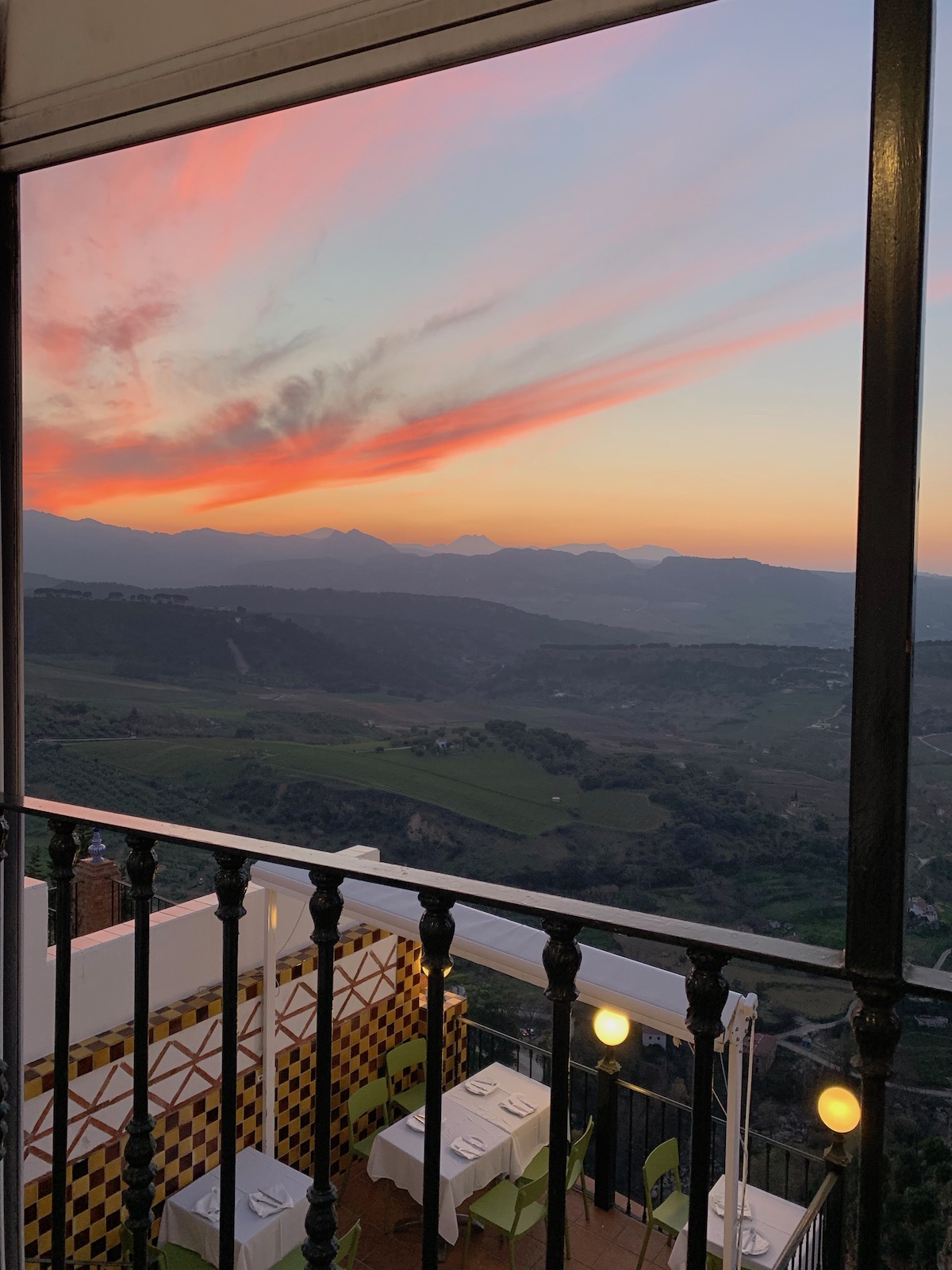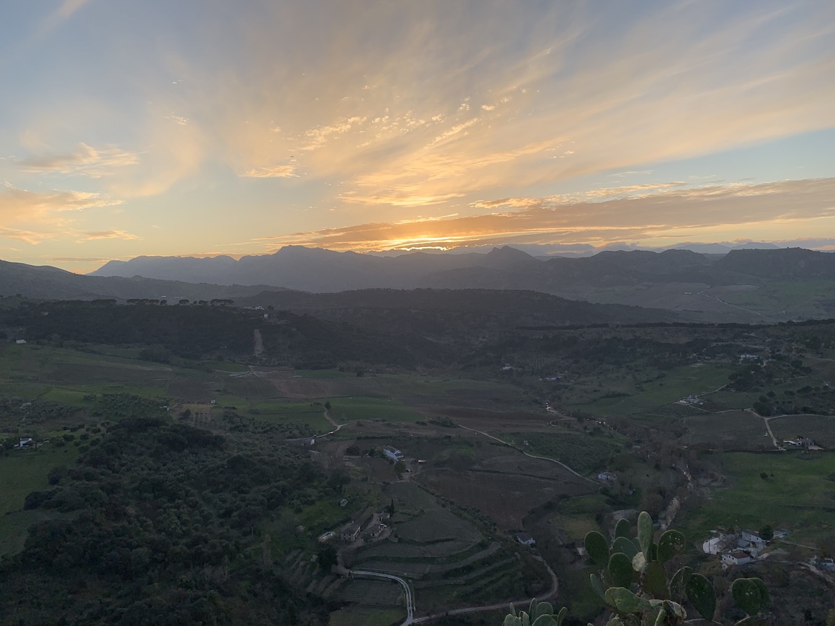 One of the places we were most looking forward to visiting in Spain was Ronda, so we were excited to enjoy a weekend getaway there. It is a relatively small town, located in the mountains northwest of Málaga on the Guadalevin River. The river creates the feature that defines Ronda: El Tajo Canyon, a steep gorge which is over 300 feet deep and divides the town in two. There are three beautiful bridges over the gorge, the Puente Romano (built by the Romans), the Puente Viejo (the “Old Bridge”, built by the Moors), and the mind-blowing Puente Nueve (The “New Bridge”, which despite the name is well over 200 years old). On one side of the canyon is the old, Moorish town, with the whitewashed buildings and narrow, winding streets. The other side contains the new town, with charming plazas and Spain’s oldest bull-fighting ring, along with the more modern outskirts.